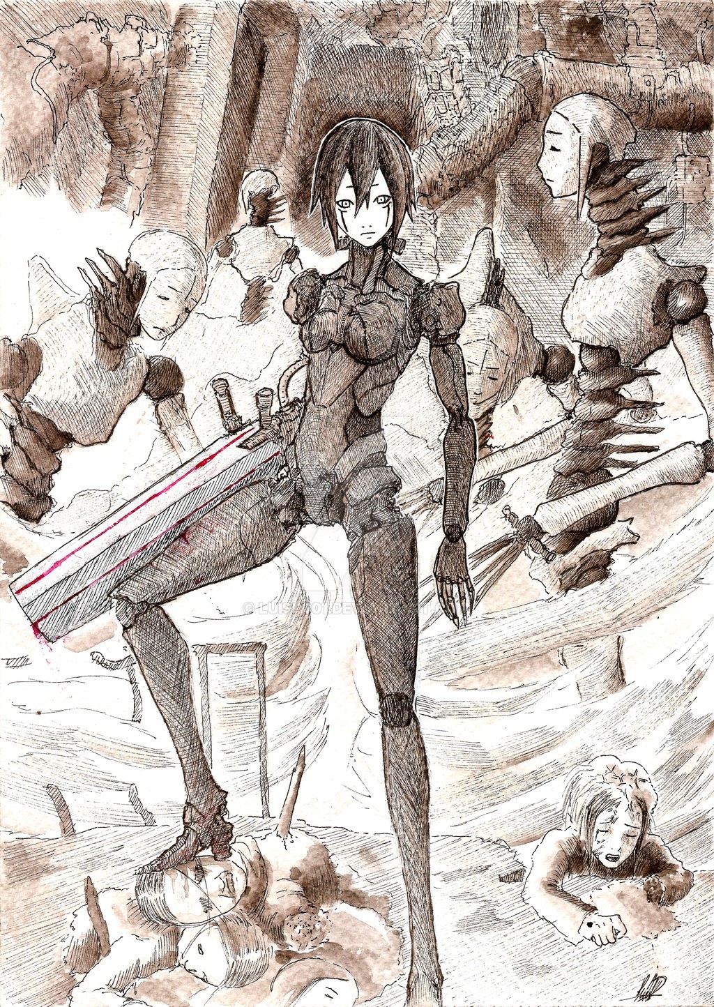 Инварианты, выбритые, в белых мантиях поверх брони, вооружились резаками и усиленными лазерами связи и встали против океана чёрной гнили. Наноматериал накрывал их волнами и облаками кишащей полуорганики, бойцы сражались с ним спокойно, с точностью механизма, и когда эта точность высчитывала неизбежность краха, те без страха направляли оружие на своего брата и губили друг друга.